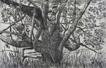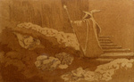Gandalf the magician in a hollow cave,after a newspaper photograph, framed and matted