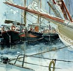 2004sailing ships moored in the harbour, framed and matted